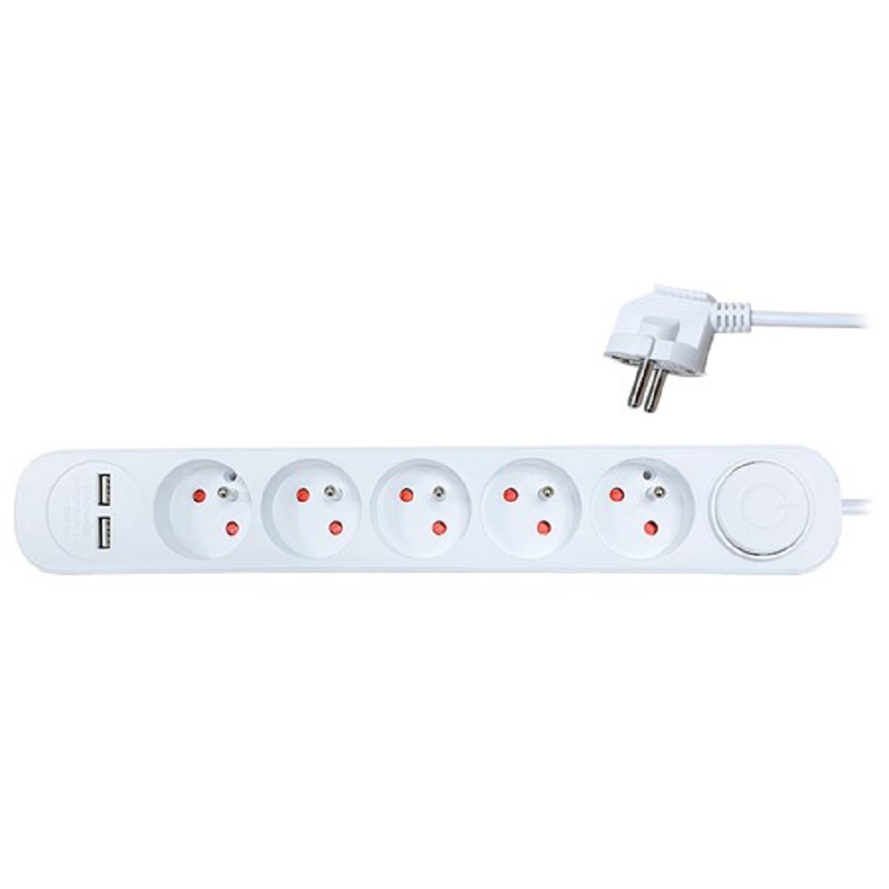Prudlužovací kabel o délce 3 metry s 5 zásuvkami, vypínačem a usb výstupem.