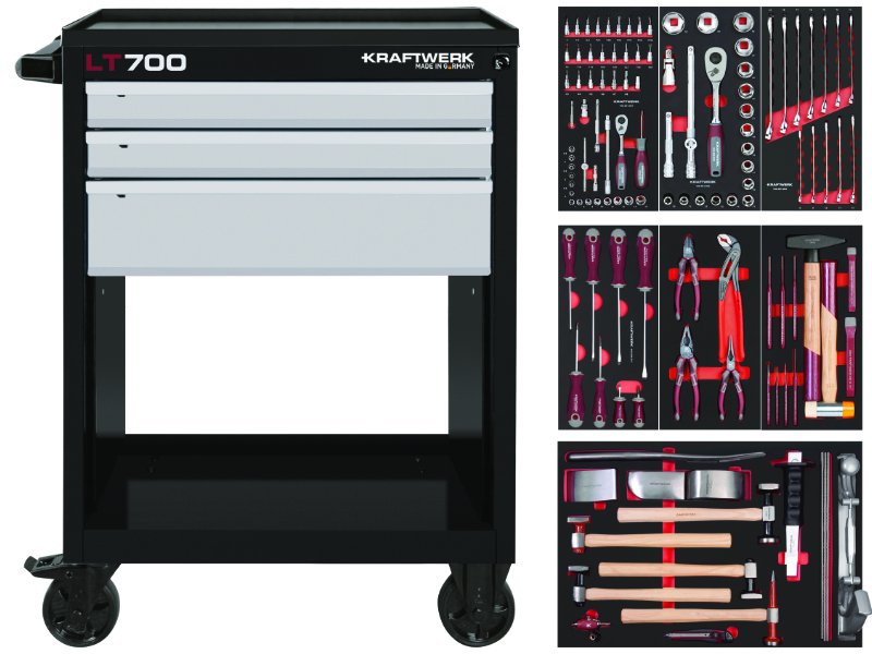 - transportní vozík LT700 3 zásuvky + nářadí 7 modulů 121ks PROFI Line - vyrobeno v Německu - profesionální servisní vozík pro všestranné použití
