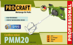 Aku míchadlo stavebních směsí Procraft PMM20 (bez baterie a nabíječky). Regulace otáček. Otáčky (min.-1) 0-750 Max. průměr metly 100 mm Hmotnost (kg) 3,5