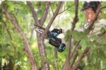 - Lehká a kompaktní prořezávací pila s lištou 150mm fungující na akumulátory Li-ion 18V