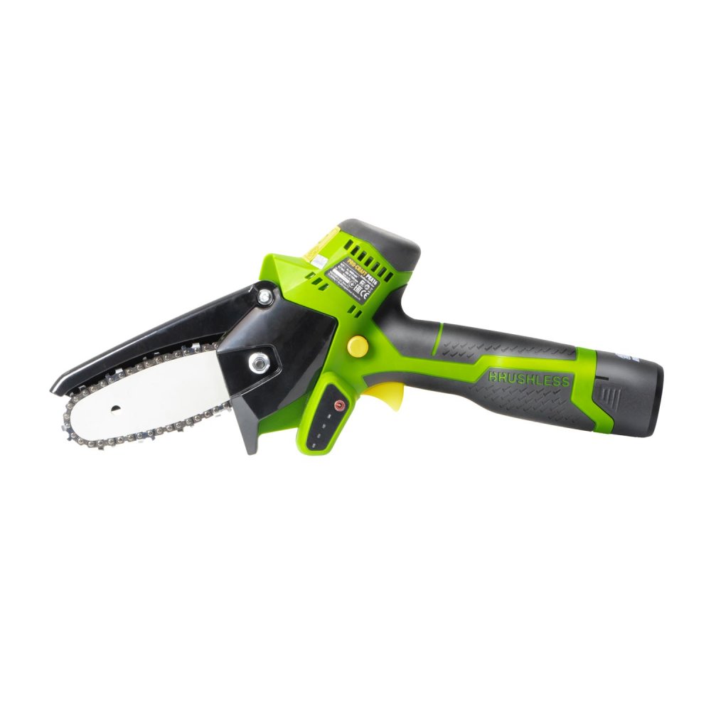 AKU jednoruční řetězová pila PKA16 je díky svým kompaktním rozměrům užitečným pomocníkem při prořezávání stromů a keřů při práci v omezeném prostoru. Její provoz je v porovnání s většími stroji tichý. Je vybavena bezpečnostním krytem pilového řetězu. Stroj je dodávaný včetně vodící lišty a pilového řetězu v kartonu s montážním klíčem, nádobou na mazací olej a akumulátorem 2Ah, 16V a nabíječkou.
