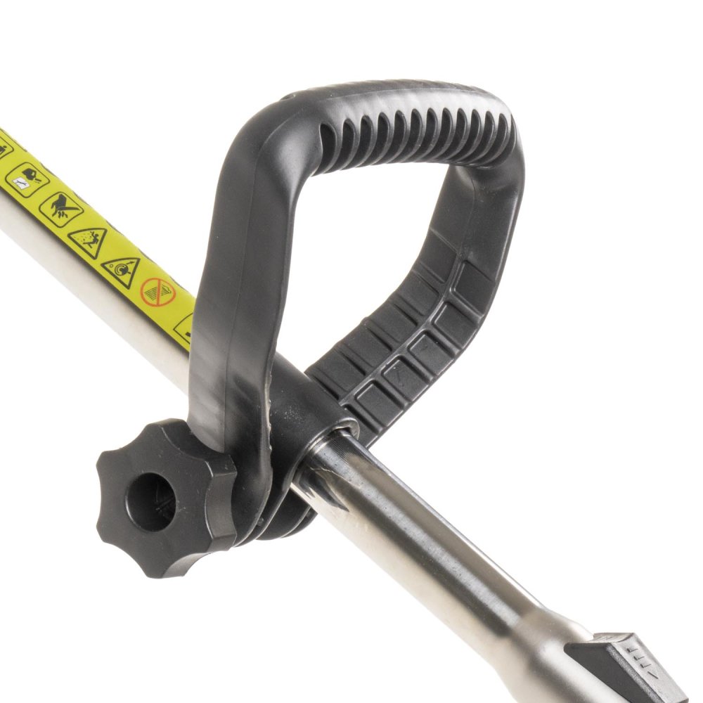 - Ochranný kryt s nožem pro zastřižení struny: Integrovaný ocelový nůž na okraji krytu automaticky zkracuje strunu na optimální délku, čímž zajišťuje efektivní sekání a zabraňuje jejímu nadměrnému opotřebení. Kryt zároveň chrání uživatele před odletující trávou a kamínky.