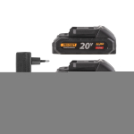 Dva výkonné akumulátory: Součástí balení jsou dvě 20V 1,5Ah Li-ion baterie, které zajistí dostatečnou energii pro delší práci