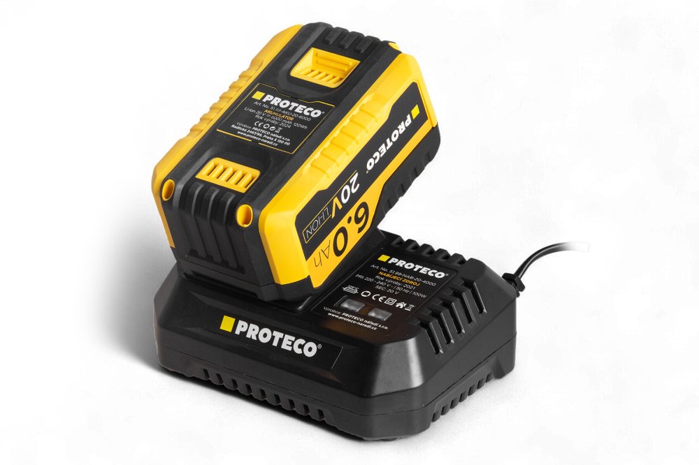 Cenově zvýhodněná sada! Li-Ion 6 Ah akumulátor; nabíječka 4.0 A s LED ukazatelem; vhodné pro všechny výrobky AKU program PROTECO;
