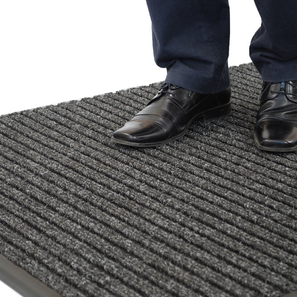 Šedá vstupní rohož s žebrovanými a odolnými vlákny, díky kterým dokonale zadrží bláto, písek a sníh u vchodu. Je odolný vůči nízkým teplotám a vlhkosti.
