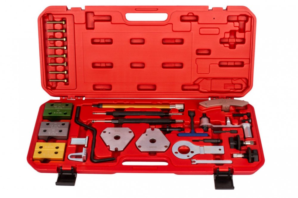 Obsáhlá sada aretačních přípravků pro automobily FIAT s benzínovými i dieselovými motory.