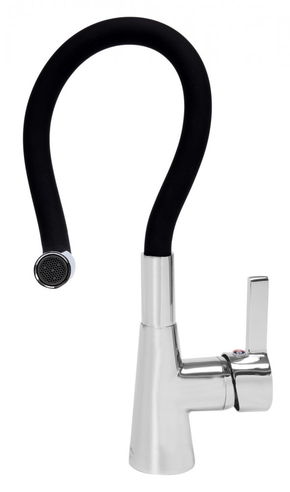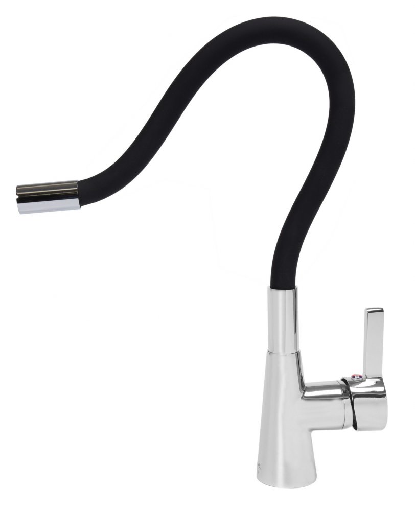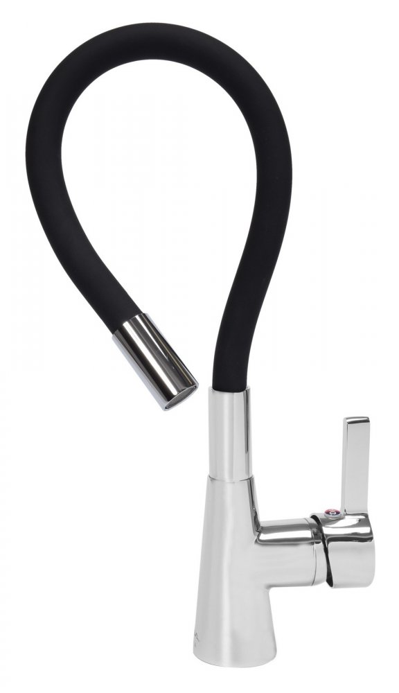 Dřezová baterie z mosazi s jedinečnou konstrukcí s ohebnou hadicí.