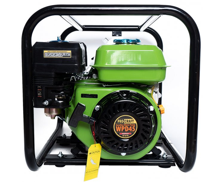 Vodní kalové čerpadlo Procraft WPD45 je určeno k odčerpání kalné vody s příměsí pevných částí z nádrže, rybníku, jezírka nebo ze sklepa při povodni. Díky speciálnímu povlaku oběžného kola a čerpadla zvládne odsát vodu kontaminovanou chemikáliemi, nebo ropnými látkami. Čerpadlo se dá lehce rozdělat díky ručním "T" šroubům a vyčistit od nanesených nečistot. Stroj je poháněn čtyřtaktní motorem s ventilovým rozvodem OHV. Který zaručí výkonnost 45 krychlových metrů z hloubky až 7 m do výšky až 25 m. Robustní ochranný rám umožňuje použití čerpadla v jakýkoliv podmínkách a taky usnadňuje transport. Součástí dodávky je klíč na svíčku, 3 hadicové svorky, sací hrdlo, převlečná matice, sací koš a těsnění. Balení karton.