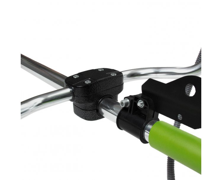Řídítka s měkkými rukojeti - a traverzou pro uchycení popruhu s možností nastavení a vyvážení stroje podle postavy obsluhy