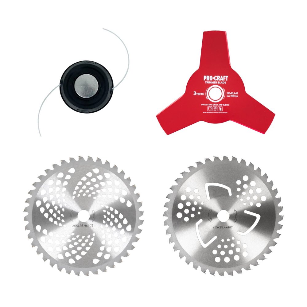 Benzínový křovinořez Procraft TP4350 je určen k sečení a vyžínání travnatých ploch, k odstranění dřevitých náletů do síly 2cm. Silný dvoutaktní motor 52ccm otáčkách 9000 zaručuje dlouhou bezporuchovou práci a vysoký výkon. Ovládání vysouvání struny je poloautomatické. Součástí dodávky je 1x runová hlava, 2x pilový kotouč na dřeviny, 3.zubý nůž, žací struna, nádoba na přípravu palivové směsi, dvouramenný popruh a sada klíčů. Průměr tyče 28mm a 9.hvězdicová osa v zaručí delší životnost převodů. Předepsaná směs oleje a benzínu je 1:40 (při záběhu 1:25) Balení karton.