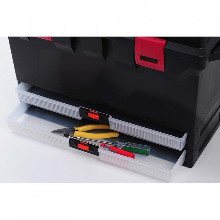 Zmíněné parametry a výbava činí z tohoto kufru perfektní skladovací prostor s vynikající variabilní organizací, který každému montérovi ulehčí práci a přenášení potřebného nářadí.