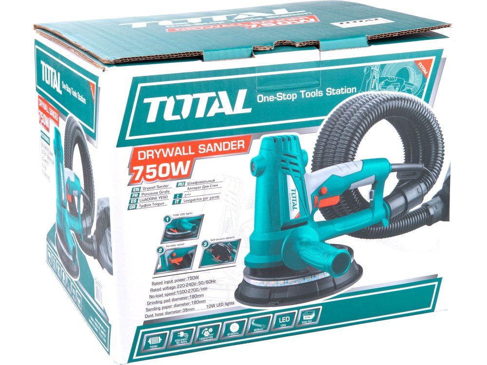 Bruska na sádrokarton je určena k broušení povrchu zdí a stropů uvnitř i vně suchých staveb za účelem např. zabroušení zatmelených sádrokartonových desek, zahlazení míst s oloupaným nátěrem, odstranění zbytků tapet a lepidla na zdech atd. Bruska je vybavena LED osvětlením. Bruska má příkon 750W, otáčky 1500-2700/min, Příjemná pogumovaná protiskluzová rukojeť pro pohodlnou práci. Je dodávána s 2...