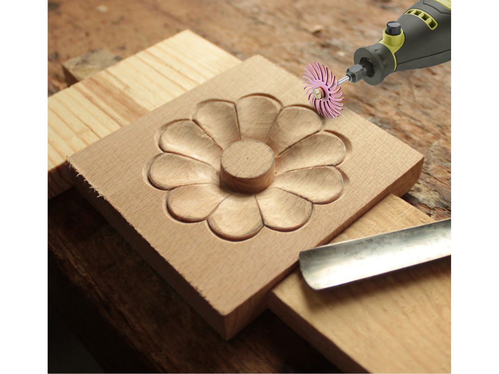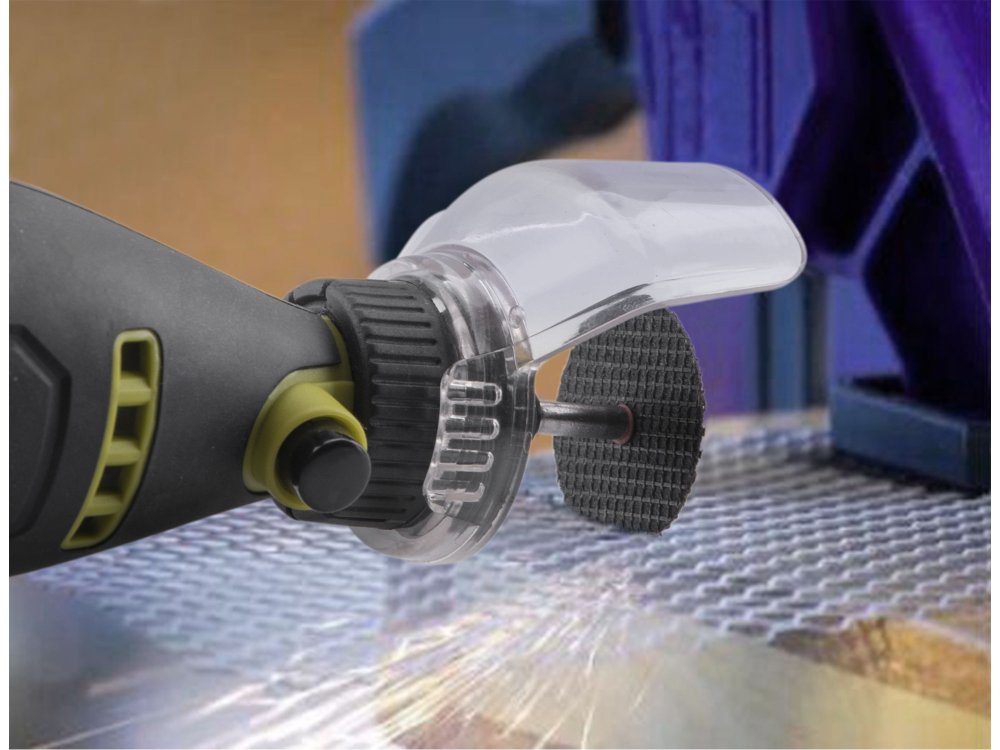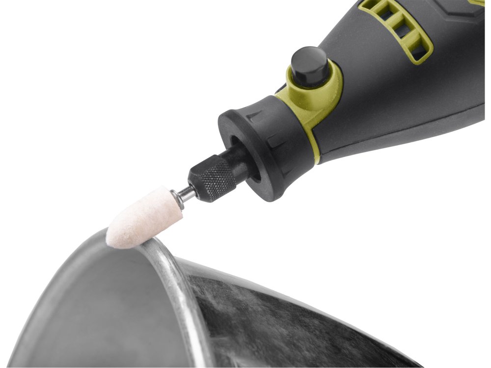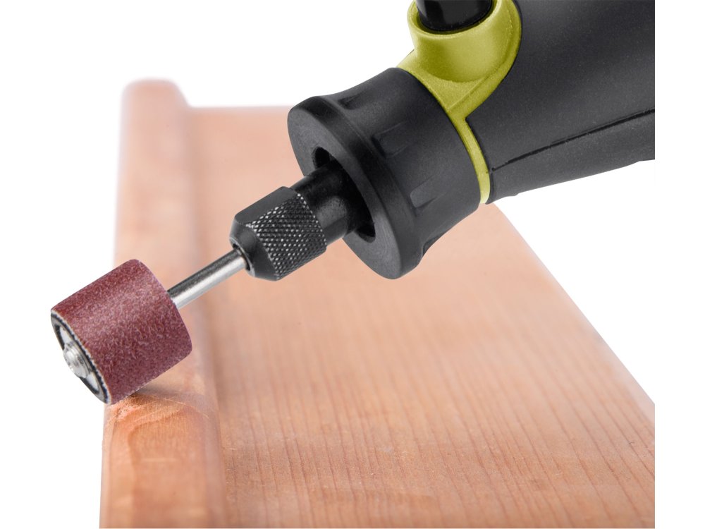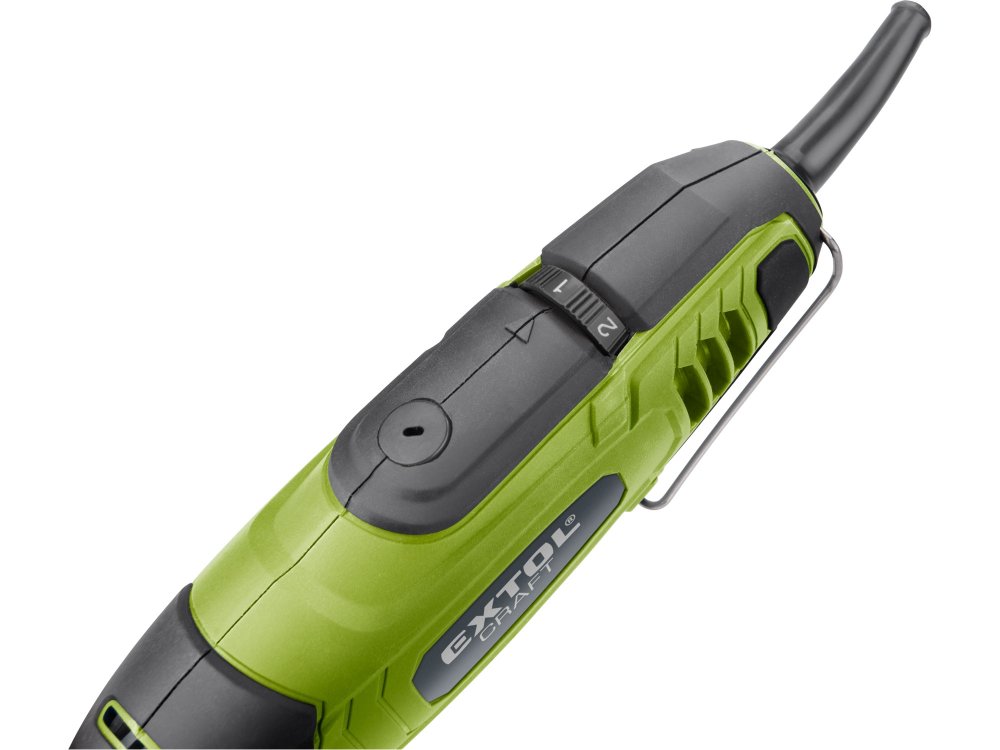 Malá bruska s řadou nástavců, určená k jemným gravírovacím pracím, preciznímu opracování dřeva, kovu či plastů a práci ve stísněných prostorech. Má ergonomický tvar a je pokrytá gumou v místech úchopu, což snižuje únavu při práci. Stroj umožňuje výměnu a montáž upínacích kleštin pro uchycení nástrojů s průměrem stopky 3 nebo 3,2 mm. Součástí balení je sada 210 kusů brusných a řezacích nástrojů ...