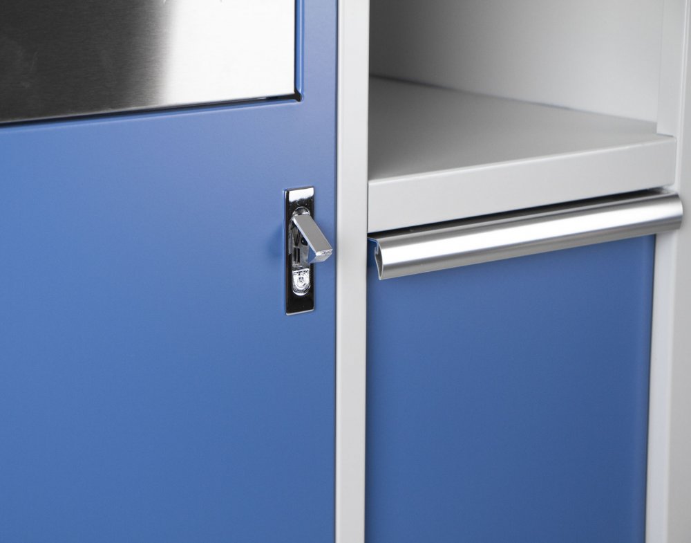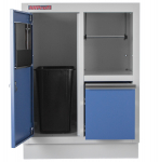 Celokovová dílenská skříňka se prodává i v rámci kvalitní PROFI 10ks sestavy dílenského nábytku TGS1300 a TGS1301. Skříňka obsahuje odpadkový koš a držák na role papíru, je vhodná do profesionálních servisů, dílen, ale také do garáží. Součástí balení není pracovní deska.