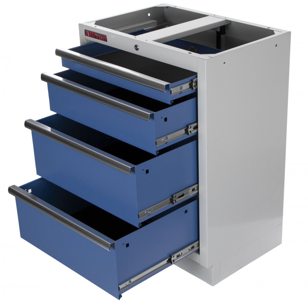 Celokovová PROFI dílenská skříňka se 4-mi zásuvkami. Prodává se i v rámci kvalitní PROFI 10ks sestavy dílenského nábytku TGS1300 nebo menších sestavách. Skříňka je vhodná do profesionálních servisů, dílen, ale také do garáží pro uskladnění širokého sortimentu zboží i ručního nářadí, na které se pak nepráší a snáze se udrží přehledně uklizené na správném místě.