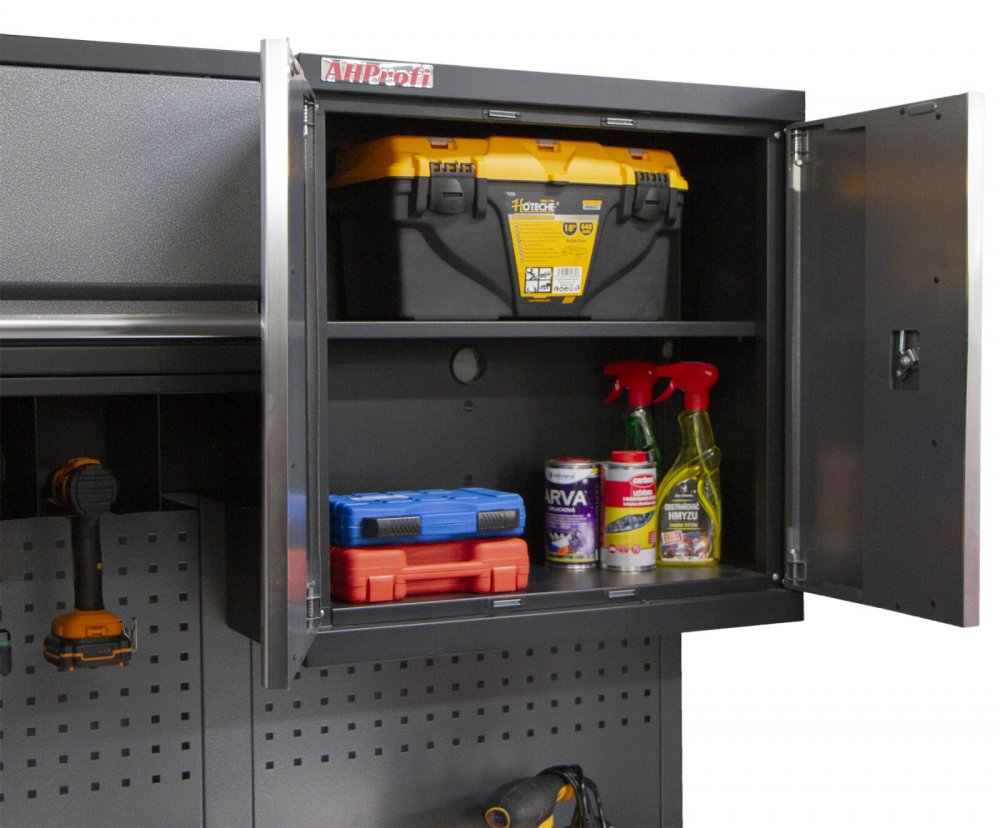 Celokovová dvoukřídlá závěsná skříňka se prodává i v rámci kvalitního PROFI dílenského nábytku. Skříňka je vhodná do profesionálních servisů, dílen, ale také do garáží pro uskladnění širokého sortimentu zboží i ručního nářadí, na které se pak nepráší a snáze se udrží přehledně uklizené na správném místě. Skříňka je uzamykatelná.