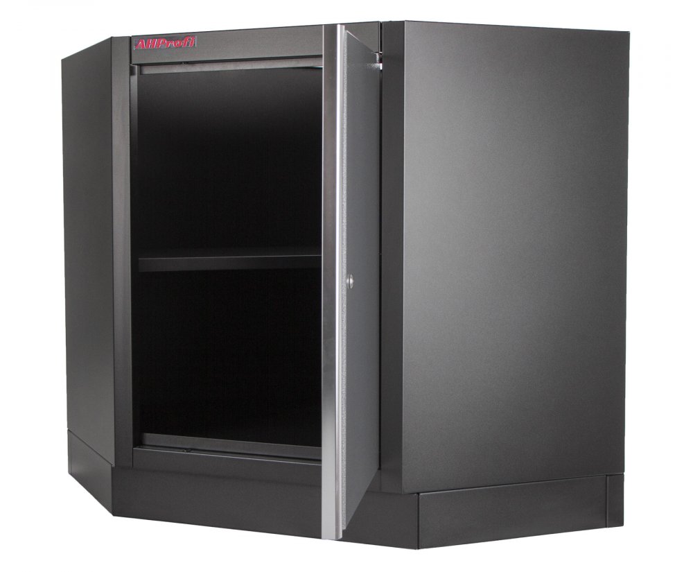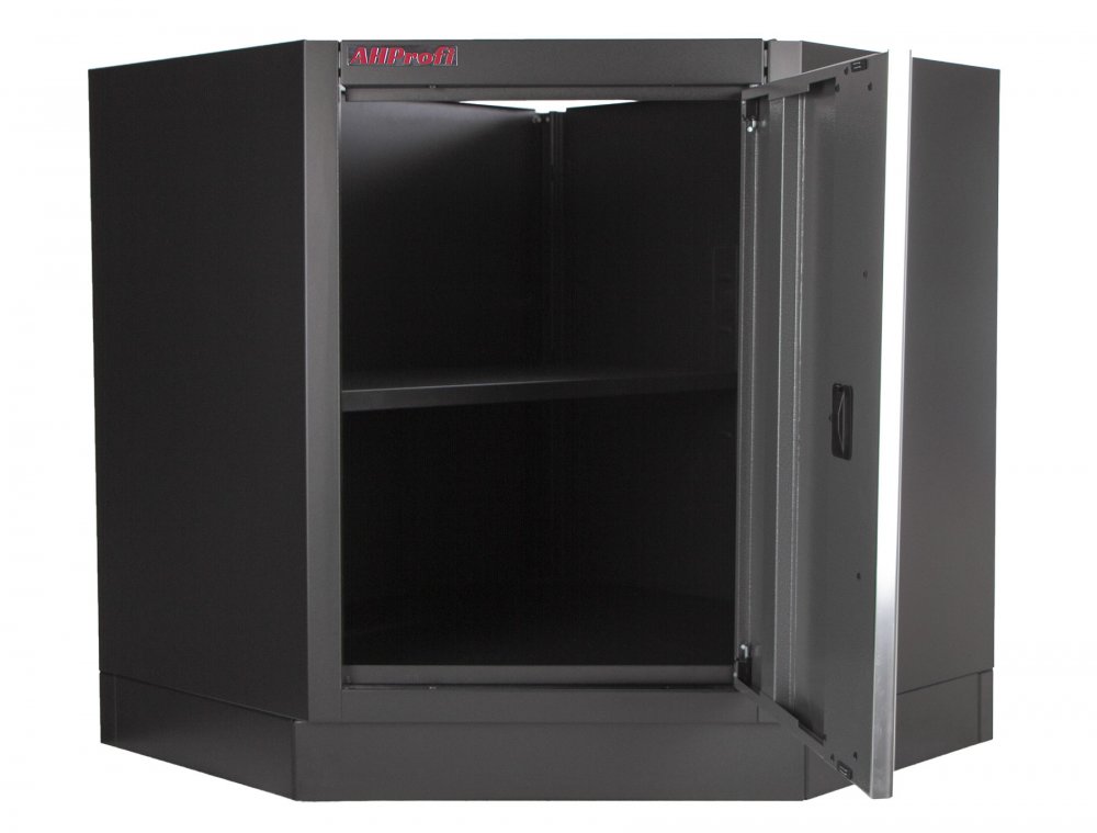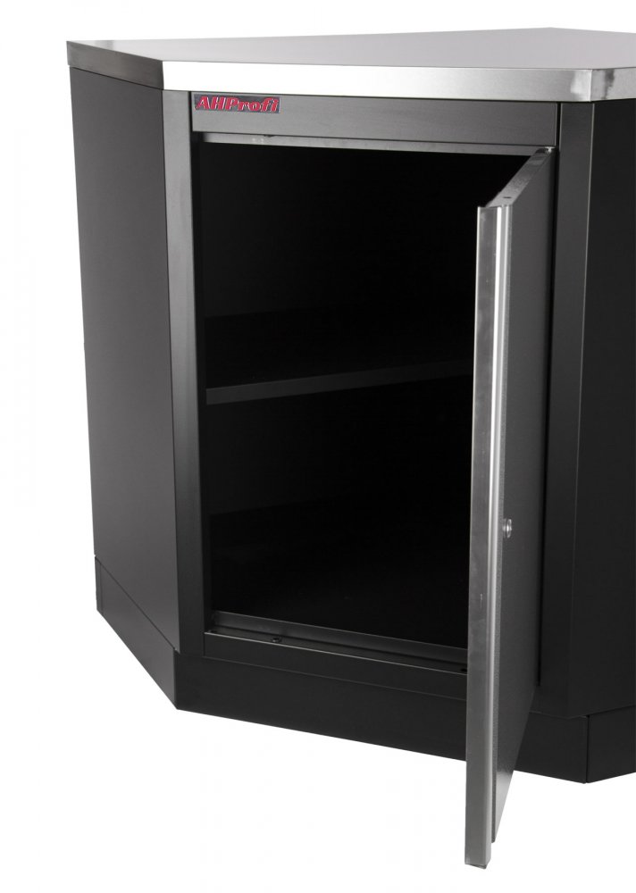 Celokovová rohová PROFI dílenská jednokřídlá skříňka se prodává i v rámci kvalitní PROFI rohové sestavy dílenského nábytku TGS1302 nebo menších sestavách. Skříňka je vhodná do profesionálních servisů, dílen, ale také do garáží pro uskladnění širokého sortimentu zboží i ručního nářadí, na které se pak nepráší a snáze se udrží přehledně uklizené na správném místě. Tato skříňka a potažmo celá rohová sestava Vám dává možnost maximálně využít prostor v garáži, domácí dílně i profi dílně a navíc parádně vypadá.