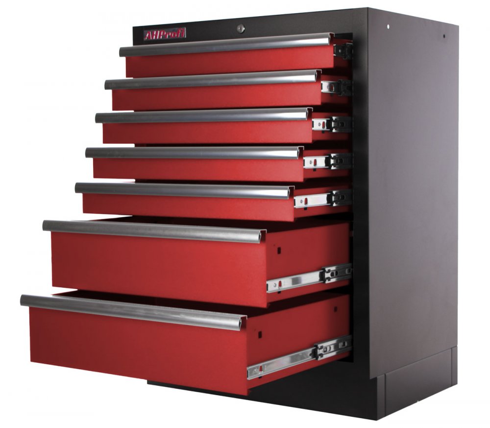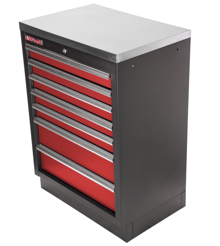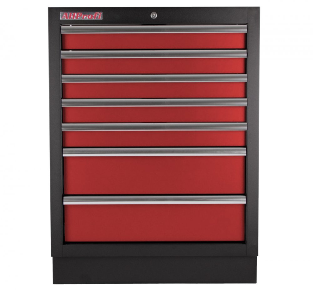 Celokovová PROFI dílenská skříňka s 7-mi zásuvkami je vhodná do profesionálních servisů, dílen, ale také do garáží pro uskladnění širokého sortimentu zboží i ručního nářadí, na které se pak nepráší a snáze se udrží přehledně uklizené na správném místě.