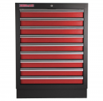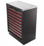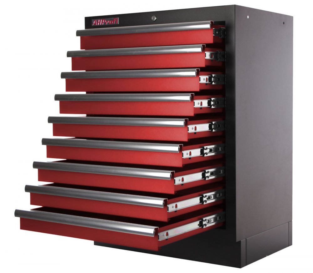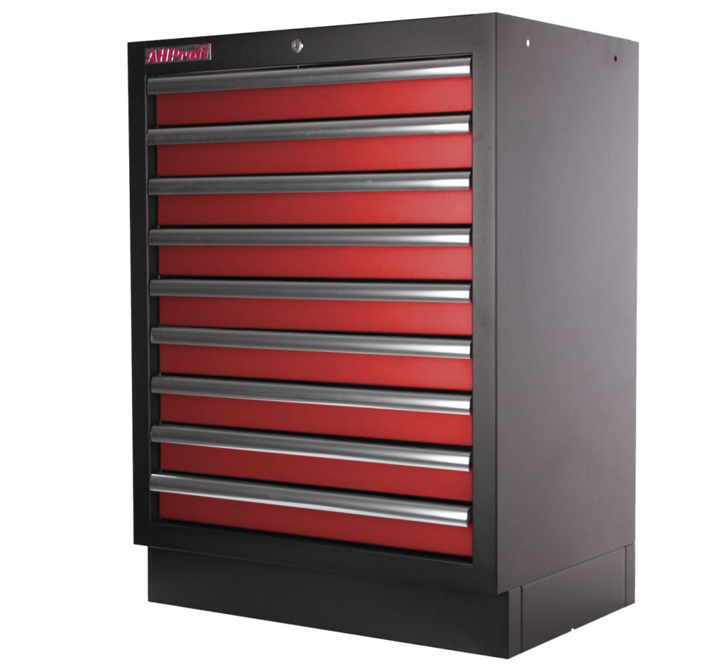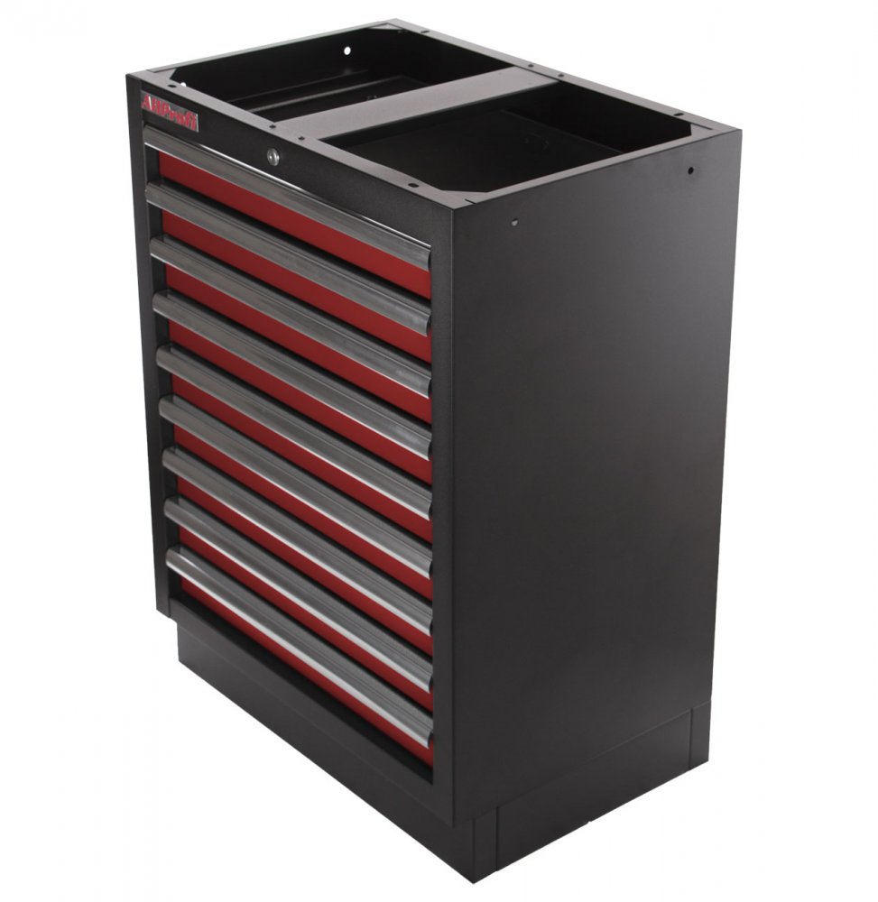 Celokovová PROFI dílenská skříňka s 9-ti zásuvkami je vhodná do profesionálních servisů, dílen, ale také do garáží pro uskladnění širokého sortimentu zboží i ručního nářadí, na které se pak nepráší a snáze se udrží přehledně uklizené na správném místě.