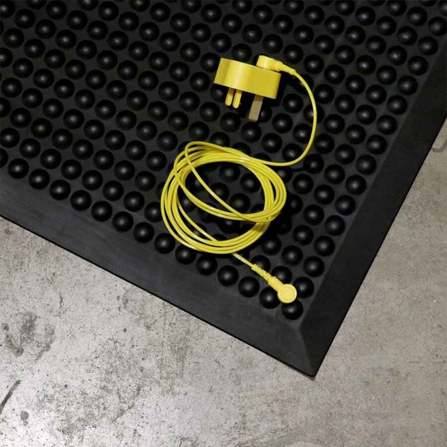 Gumová protiúnavová protiskluzová ESD rohož je pěnová rohož s bublinkovým povrchem, která slouží k boji s únavou v oblastech citlivých na elektrostatický výboj (ESD). Jedná se o antistatickou a protiúnavovou rohož zajišťující komfort a bezpečnost.