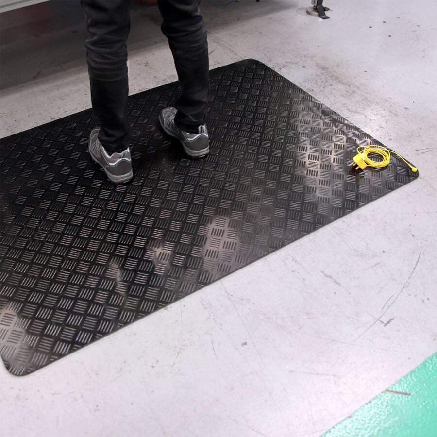 Podložka obsahuje vodivou vrstvu, která neutralizuje statický náboj a chrání tak komponenty před poškozením. Horní povrch poskytuje odolnost vůči mnoha průmyslovým chemikáliím. Komfortní diamantový povrch podporuje jemné pohyby, které dále snižují únavu.