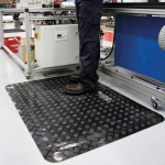 Rohož se dodává se zkosenými hranami, které chrání pracovníky před zakopnutím a umožňují přístup lehčím mechanismům s kolečky.