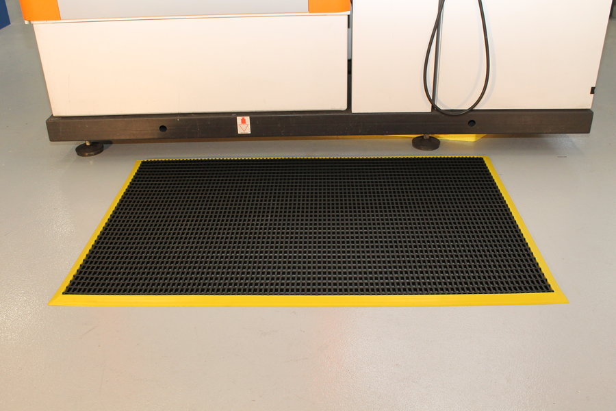 Univerzální rohož olemovaná bezpečnostními nájezdovými hranami. Jemně rýhovaný povrch snižuje riziko uklouznutí v mokrých i mastných prostředích. Díky otvorům do rohože propadávají nečistoty jako odřezky a třísky.