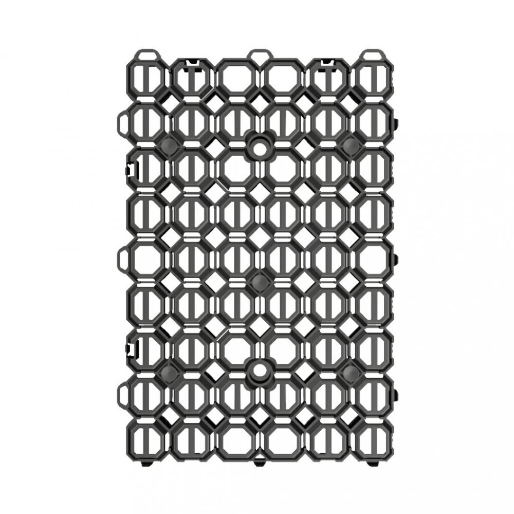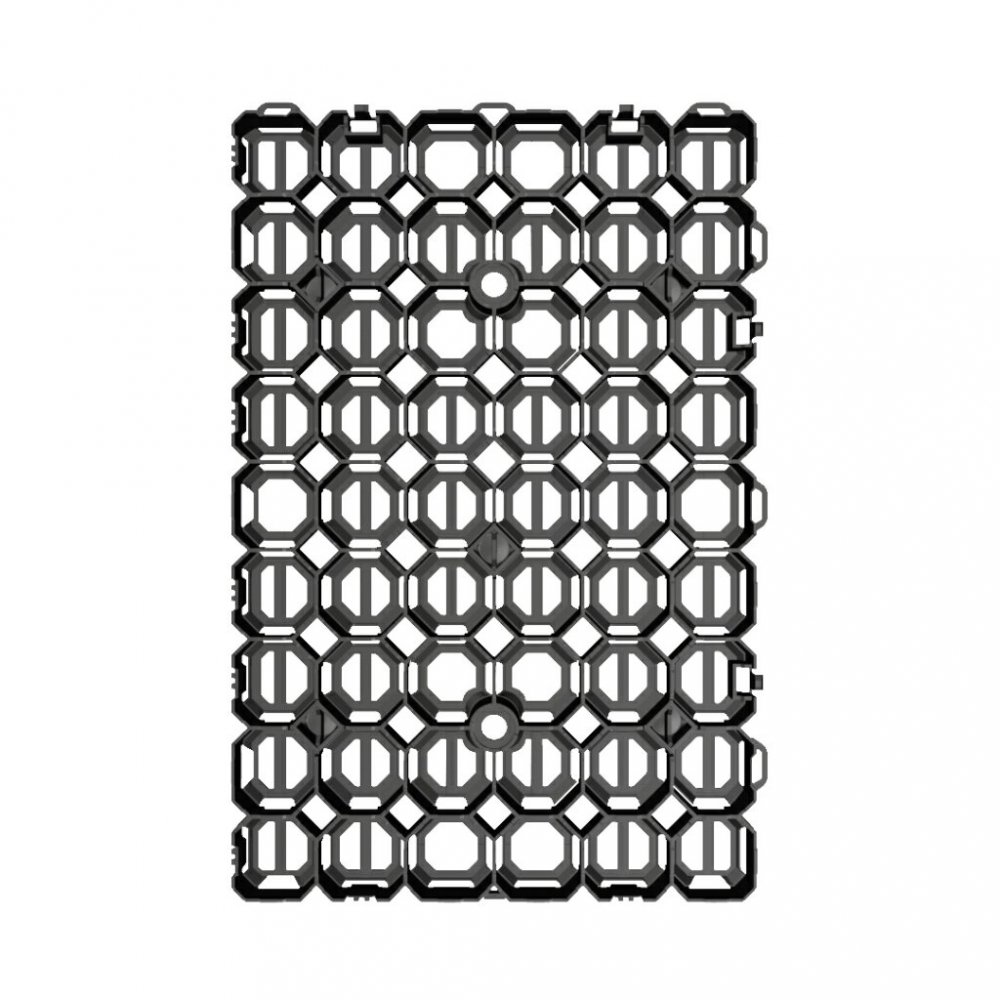 Jedinečný design zabraňuje posouvání vrchního sypkého materiálu ale zároveň díky otvorům je drenáž podlahy plně zajištěna. Díky tomuto provedení ve tvaru pláství medu drží výplňový materiál pevně pohromadě. Mřížky na lícní straně mají protiskluzové výčnělky a po obvodu jsou zámky pro spojování s ostatními zatravňovacími mřížkami.