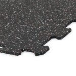 Gumová dlažba (modulová podlaha) FLOMA IceFlo SF1100 s příměsí 5+5% EPDM barevného granulátu v provedení 5% bílá + 5% červená se systémem puzzle zámků je velice odolná vůči poškození od ledních bruslí, je rezistentní vůči vodě a tlumí hluk a vibrace. Tedy je perfektní volbou dlažby pro plochy kolem kluziště, střídačky, šatny, fitness pro hokejisty a další místa na zimních stadionech. Díky vlastnostem použitého materiálu je dlažba odolná proti poškození od ostří bruslí a současně jej netupí. Tedy nepropustná a velmi houževnatá podlaha vyrobena z pryžového granulátu a vláken.