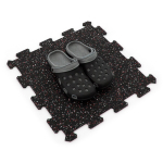 Gumová dlažba (modulová podlaha) FLOMA FitFlo SF1050 s příměsí 5+5% EPDM barevného granulátu v provedení 5% bílá + 5% červená je ideální podlahou do domácích posiloven a fitness (profesionální fitness centra obvykle volí výšku 1,6 cm). Velice dobře absorbuje nárazy, pády při cvičení, zmírňují dopady činek a cvičícího nářadí. Nespornou výhodou materiálu je také šetrnost ke kloubnímu aparátu cvičence. Tato gumová podlahovina se dá použít jako celoplošná podlaha do domacích fitness, jako pochůzné plochy v posilovnách, jako podložky pod cvičící stroje, odkládací plochy pro činky a další.