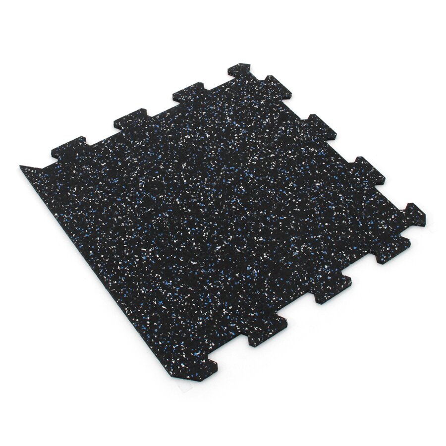 Gumová dlažba (modulová podlaha) FLOMA FitFlo SF1050 s příměsí 5+5% EPDM barevného granulátu v provedení 5% bílá + 5% modrá je ideální podlahou do domácích posiloven a fitness (profesionální fitness centra obvykle volí výšku 1,6 cm). Velice dobře absorbuje nárazy, pády při cvičení, zmírňují dopady činek a cvičícího nářadí. Nespornou výhodou materiálu je také šetrnost ke kloubnímu aparátu cvičen... Celý popis