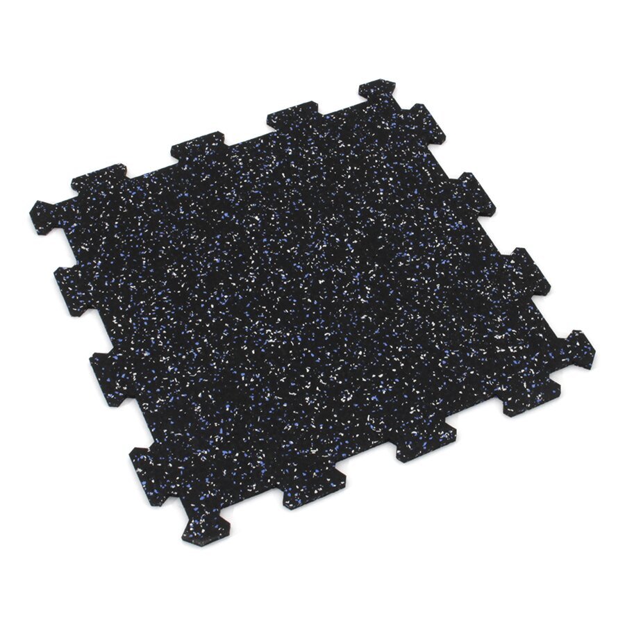 Gumová dlažba (modulová podlaha) FLOMA IceFlo SF1100 s příměsí 5+5% EPDM barevného granulátu v provedení 5% bílá + 5% modrá se systémem puzzle zámků je velice odolná vůči poškození od ledních bruslí, je rezistentní vůči vodě a tlumí hluk a vibrace. Tedy je perfektní volbou dlažby pro plochy kolem kluziště, střídačky, šatny, fitness pro hokejisty a další místa na zimních stadionech. Díky vlastnostem použitého materiálu je dlažba odolná proti poškození od ostří bruslí a současně jej netupí. Tedy nepropustná a velmi houževnatá podlaha vyrobena z pryžového granulátu a vláken.