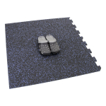Gumová dlažba (modulová podlaha) FLOMA FitFlo SF1050 s příměsí 10% EPDM barevného granulátu v provedení 10% modrá je ideální podlahou do domácích posiloven a fitness (profesionální fitness centra obvykle volí výšku 1,6 cm). Velice dobře absorbuje nárazy, pády při cvičení, zmírňují dopady činek a cvičícího nářadí. Nespornou výhodou materiálu je také šetrnost ke kloubnímu aparátu cvičence. Tato gumová podlahovina se dá použít jako celoplošná podlaha do domacích fitness, jako pochůzné plochy v posilovnách, jako podložky pod cvičící stroje, odkládací plochy pro činky a další.