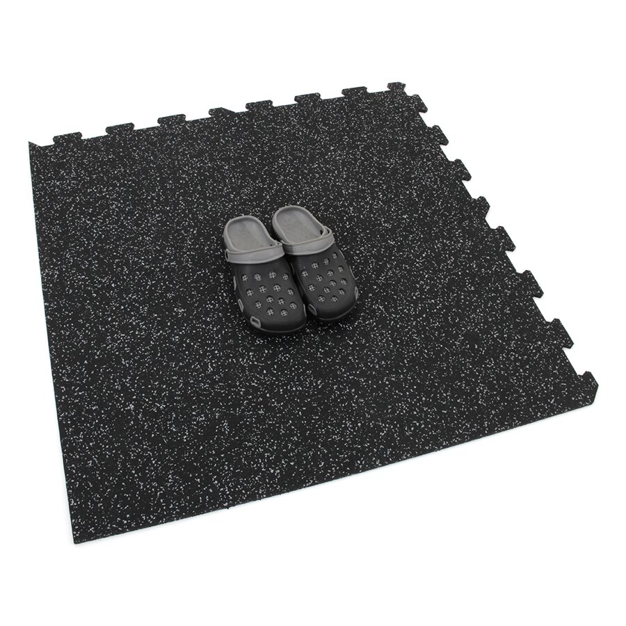 Gumová dlažba (modulová podlaha) FLOMA FitFlo SF1050 s příměsí 10% EPDM šedého granulátu v provedení STANDARD je ideální podlahou do domácích posiloven a fitness (profesionální fitness centra obvykle volí výšku 1,6 cm). Velice dobře absorbuje nárazy, pády při cvičení, zmírňují dopady činek a cvičícího nářadí. Nespornou výhodou materiálu je také šetrnost ke kloubnímu aparátu cvičence. Tato gumová podlahovina se dá použít jako celoplošná podlaha do domacích fitness, jako pochůzné plochy v posilovnách, jako podložky pod cvičící stroje, odkládací plochy pro činky a další.