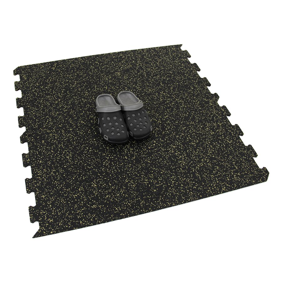 Gumová dlažba (modulová podlaha) FLOMA FitFlo SF1050 s příměsí 10% EPDM barevného granulátu v provedení 10% žlutá je ideální podlahou do domácích posiloven a fitness (profesionální fitness centra obvykle volí výšku 1,6 cm). Velice dobře absorbuje nárazy, pády při cvičení, zmírňují dopady činek a cvičícího nářadí. Nespornou výhodou materiálu je také šetrnost ke kloubnímu aparátu cvičence. Tato gumová podlahovina se dá použít jako celoplošná podlaha do domacích fitness, jako pochůzné plochy v posilovnách, jako podložky pod cvičící stroje, odkládací plochy pro činky a další.