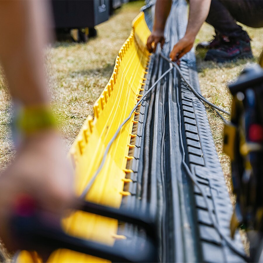Kabelový most DEFENDER NANO disponuje víkem a šesti kanály pro ochranu kabelů, hadic či trubek na chodnících, ve výrobních provozech, na výstavách, kulturních akcích, v kancelářích apod.
