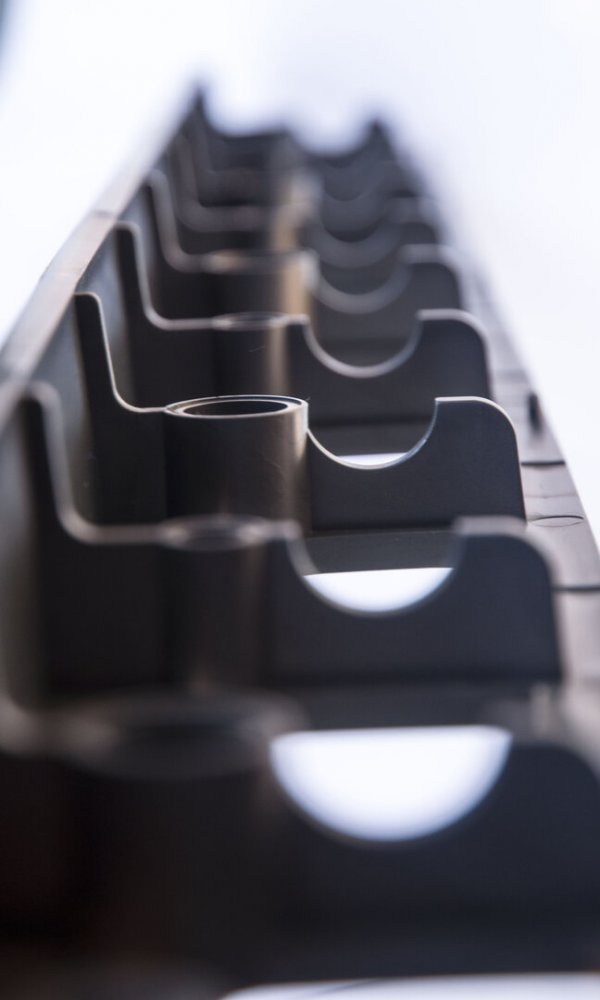 Pro zatočení obrubníku je potřeba plast nastřihnout viz detail na obrázku. Budete-li obrubníky tvarovat, ponořte je nejdříve do teplé vody nebo nechte zahřát na sluníčku. Materiál se tak stane ohebnějším a zamezíte případnému prasknutí.