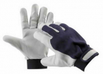 PELICAN PLUS - rukavice pracovní šité z jemné lícové kozinky v dlani, bílé bavlněné tkaniny na hřbetu a s nápletem velikost velikost 10