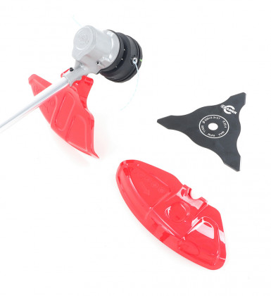 - Prémiová strunová žací hlava s nárazovým odvinutím má šířku sečení 45cm, pro rychlé vyžínání trávy, zatímco ocelový nůž křovinořezu o průměru 300mm si poradí i s odolnější zarostlou plochou