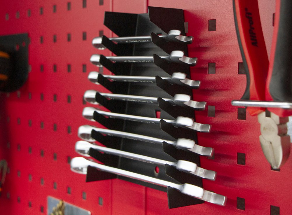 Deska je vhodná do profesionálních servisů, dílen, ale také do garáží pro uskladnění širokého sortimentu zboží i ručního nářadí, na které se pak nepráší a snáze se udrží přehledně uklizené na správném místě.