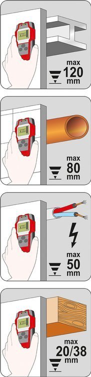 Použití detektoru YATO YT-73138 a metru 4v1 výrazně urychluje práci, zvyšuje bezpečnost a minimalizuje riziko náhodného poškození elektrické nebo hydraulické instalace umístěné pod omítkou. Díky ní můžete mj bezpečně vyvrtejte díru nebo najděte místo pro zašroubování šroubu do dřevěného nebo kovového profilu skrytého pod sádrokartonem. Vestavěný vlhkoměr umožní mj zjišťování úrovně vlhkosti omítky v tepelných mostech a také kontrola vlhkosti u dřeva určeného jako palivo.