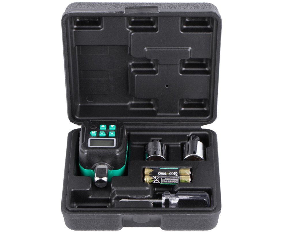 Digitální momentový adaptér, velikost pohonu 1/2", rozsah 17 - 340 Nm, přesnost ±2 %. Včetně redukcí 1/2" na 3/8" a 1/2" na 1/4".