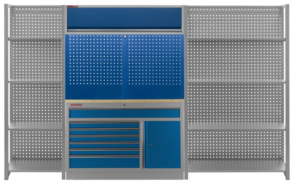 Sestava nábytku v sobě skrývá dostatečné množství úložného prostoru pro vaše nářadí, autotechniku i dílenské vybavení. V kombinaci s bytelnou pracovní deskou získáte multifunkční stěnu, se kterou vám půjde práce od ruky ve všech směrech.