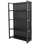 Stabilitu regálu zajišťují dvě bočnice a zadní děrovaná deska, kterou lze také využít pro zavěšení drobného nářadí pomocí háčků (nářadí a háčky nejsou součástí balení).