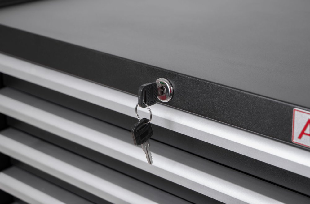 Celokovová dílenská skříňka s 5 zásuvkami nabízí spolehlivý úložný prostor pro organizaci nářadí.