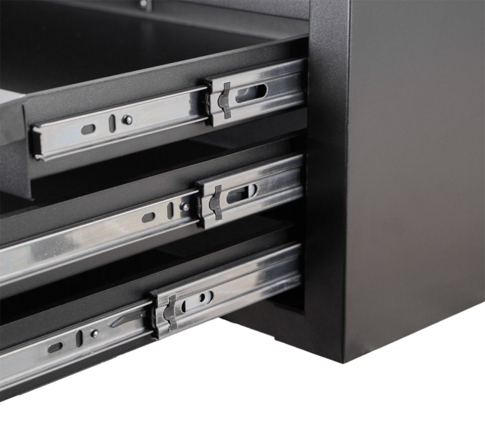 Zásuvky jsou vybaveny vodicími lištami s kuličkovými pojezdy pro hladký a tichý chod, a unesou i těžší vybavení.