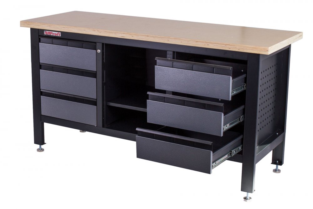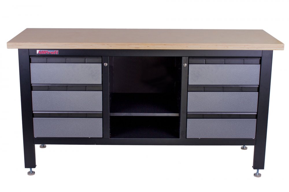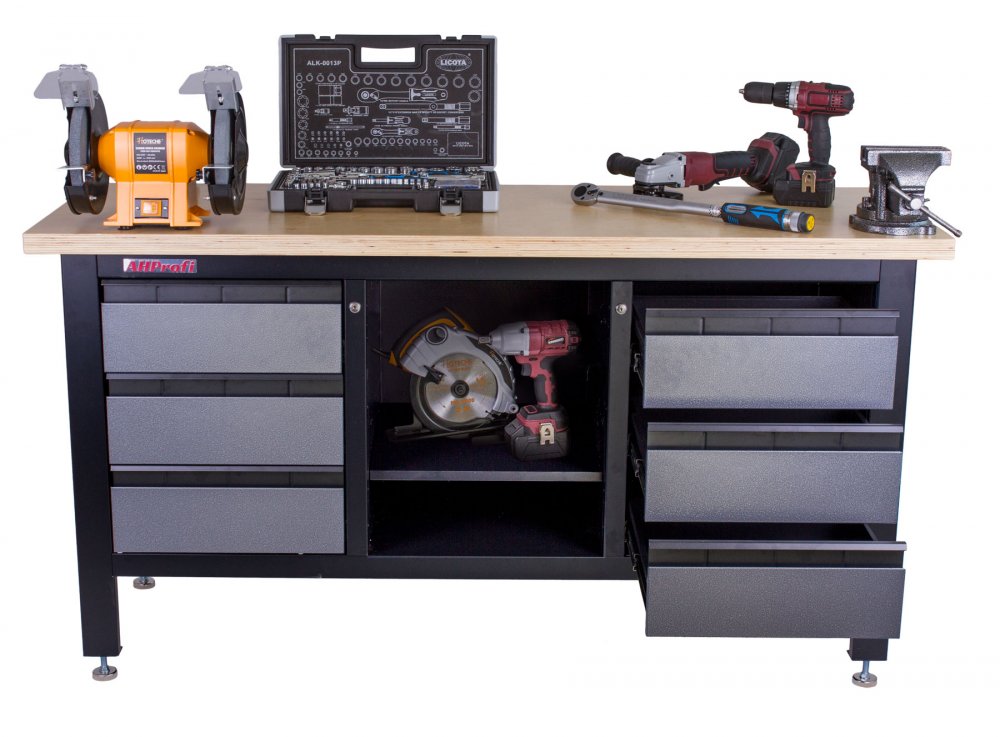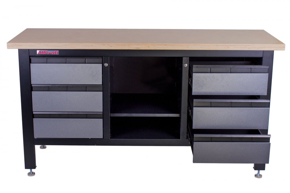 Profesionální kovový ponk vhodný pro nejnáročnější použití. Nosnost pracovního stolu je 300 kg. Je vybavený dřevěnou pracovní deskou o rozměrech 1690 x 600 mm, 6 šuplíky a policí.