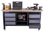Po práci můžete nářadí uklidit do šuplíků a kufříky s nářadím uložit do regálů uprostřed ponku.