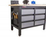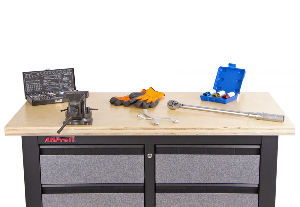 Na pracovní dřevěnou desku o rozměrech 1200 x 600 mm se vejde spousta používaného nářadí, jako je například gola sada nebo momentový klíč.