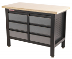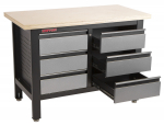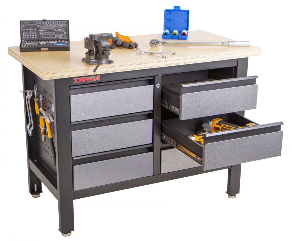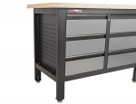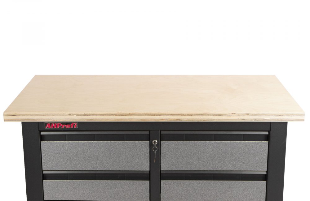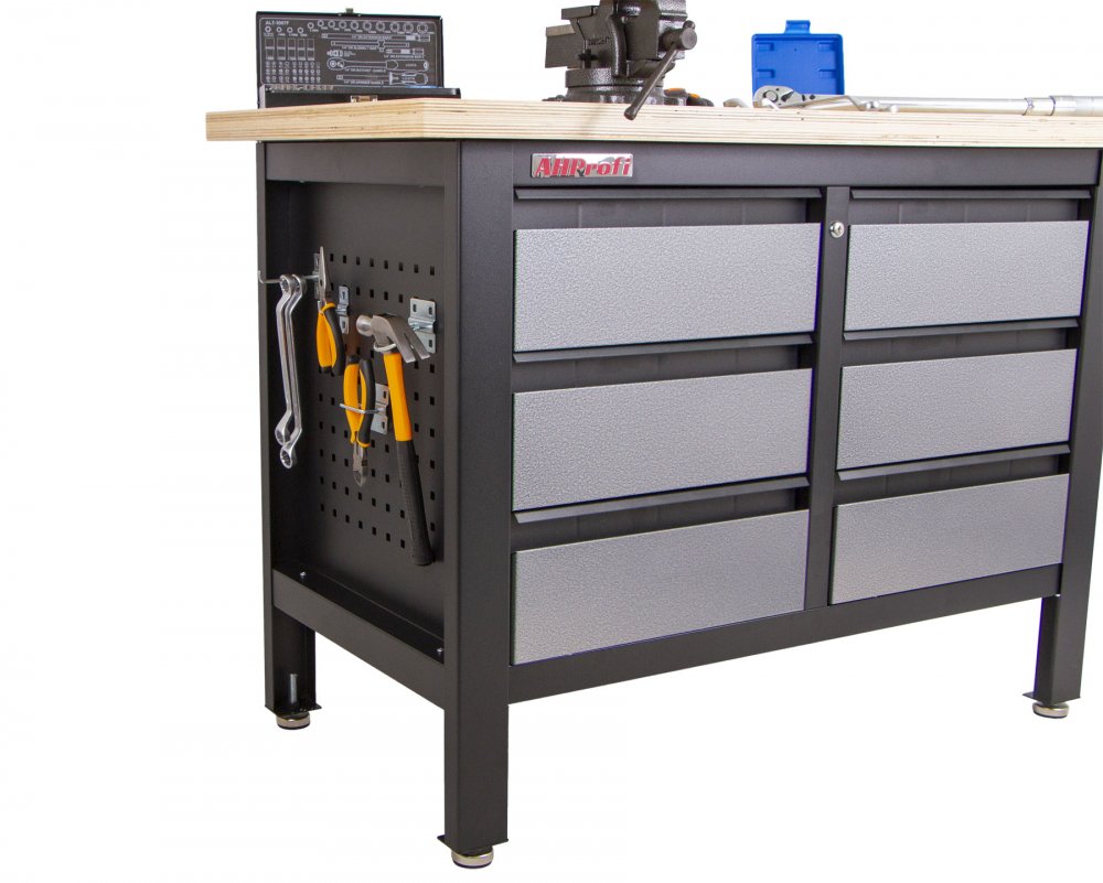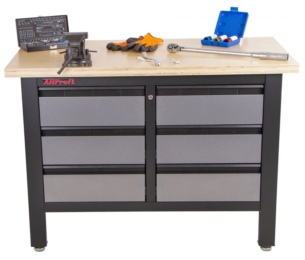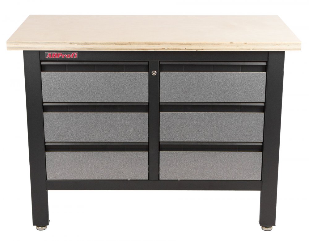 Stůl je vybavený dřevěnou pracovní deskou o rozměrech 1200 x 600 mm a obsahuje 6 uzamykatelných zásuvek.